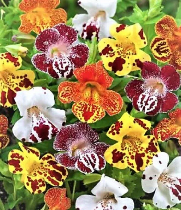 Mimulus tigrinus 'Grandiflorus Mixed', известного как Губастик тигровый крупноцветковый (Смесь) или Обезьяний цветок.