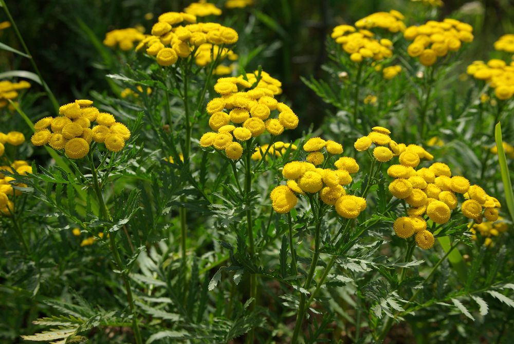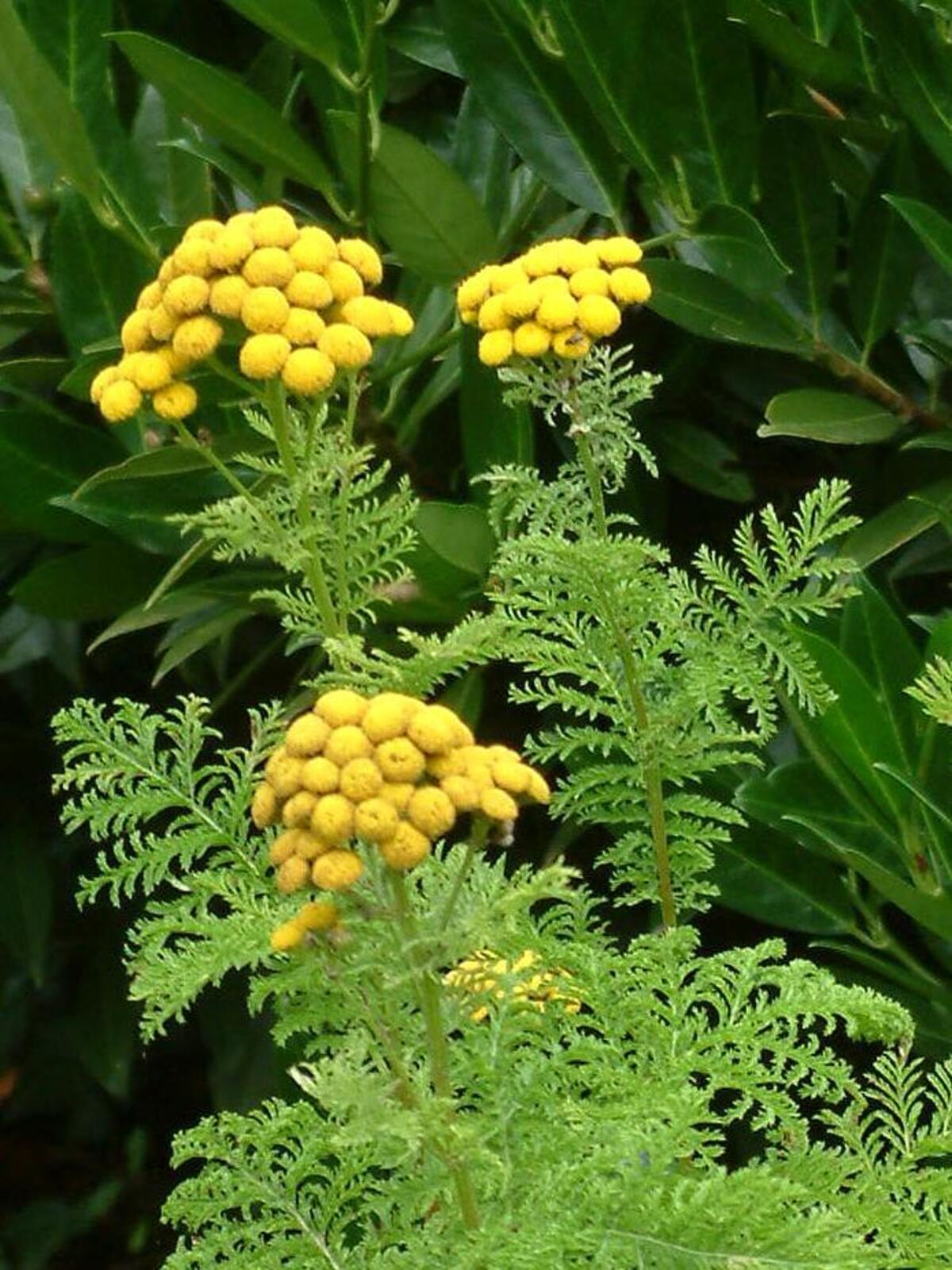 Цветы: Ярко-желтые, трубчатые. Пижма уникальна тем, что в его корзинах отсутствуют язычковые (лепестковые) краевые цветки (как у ромашки или подсолнечника), поэтому соцветие выглядит как ярко-желтая кнопка.