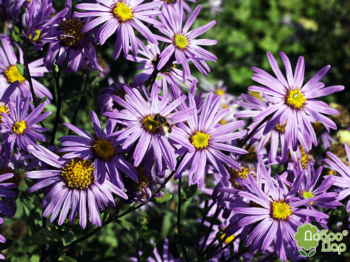 Прекрасное украшение осеннего сада. Куст полушаровидной формы, компактный, густой, плотный, с хорошо разветвленными опушенными стеблями, достигает в высоту до 50 сантиметров. Листья сидячие, линейно-ланцетные, расположенные в очередном порядке. Цветы крупные, до 4-5 см в диаметре, собранные в рыхлые щитковидные соцветия по 10-15 штук, поэтому растение плотно ими покрыто. Язычковые цветки окрашены в лавандово-голубой цвет, трубчатые имеют желтую окраску. Сорт цветет с августа до заморозков, в среднем этот период составляет 60-65 дней. Растение свето и солнцелюбивое, холодостойкое. Предпочитает достаточно плодородную, легкую, хорошо дренированную почву, регулярный полив и подкормки. Высевают весной на рассаду или в открытый грунт. Возможен подзимний посев. Оптимальная для прорастания семян температура почвы составляет 10-15 °С. Кусты делят раз в 3-4 года, весной. Сорт прекрасно подходит для использования на альпийских горках, в рокариях, бордюрах и групповых посадках. Также эти астры могут быть использованы как срезочная культура.