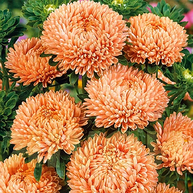 Астра Королевский размер салмон роуз — великолепная крупноцветковая серия срезочных астр. Куст высотой до 100 см, широкий, раскидистый, с большим количеством крепких цветоносов. Соцветия крупные, густомахровые, шаровидной формы, диаметром более 12 см. Одним из многочисленных достоинств этой серии является – высокая устойчивость к болезням и неблагоприятным условиям, а также длительное и обильное цветение (с июля по сентябрь). Для более раннего и обильного цветения астру выращивают рассадным способом. Семена высевают в апреле, пикируют с развитием первой пары настоящих листочков, в открытый грунт рассаду высаживают с середины мая. Возможен посев семян в открытый грунт в мае-июне на глубину 1-1,5 см.