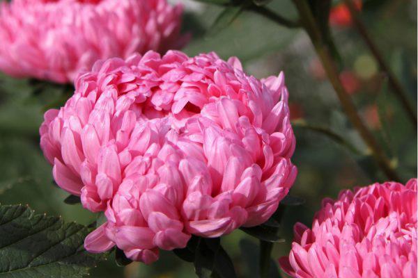 Астра пионовидная ярко-розовая — вся элегантность и красота пионов и садовых хризантем в едином, легко выращиваемом, однолетнике. Образует мощный высокорослый куст колоновидной формы с прямостоячими, гибкими стеблями, 65-70 сантиметров в высоту. Астра обильно кустится, каждое растение насчитывает 8-10, а иногда и до 30-ти, прочних цветоносов. Листья овальные, на конце заостренные, зубчатые. Цветение астры начинается с середины июля. В этот период на кончиках цветоносов, с превосходной однородностью, раскриваются махровые соцветия полусферической формы, 8-10 сантиметров в диаметре. Пушистые корзинки на самом деле не цветки, а соцветия, состоящие из ложноязычковых ладьевидной формы и трубчатых цветков. Цветки астры – это то, что большинство далеких от ботаники людей считает ее лепестками. Серединка – желтая. Астры находят универсальное применение – от выращивания на срез до оформления клумб и цветников. Астра светолюбива и холодостойка, выносит понижение температуры до -3°C. Хорошо переносит пересадку в цветущем виде. В сухую жаркую погоду растения обильно поливают. Предпочитает солнечное место посадки и нейтральную почву. Требуется редкий, но обильный полив и осторожное рыхление.
